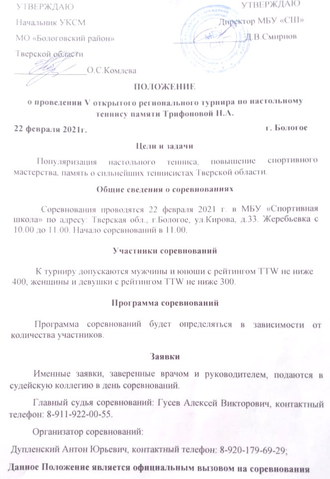 Ирина Борисова также акцентировала внимание на том, что вице президент Ассоциации настольного тенниса Тверской области Романов А. Н. подделывает документы при проведении соревнований, которые касаются присвоения спортивных разрядов и судейских категорий, нарушает правила соревнований при жеребьевке. Печально, что работник Комитета Пожидаев П. В. закрывает глаза на все это безобразие.